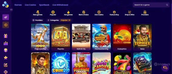 - Slots: Enjoy popular titles like Gates of Olympus and new releases with Drops & Wins.